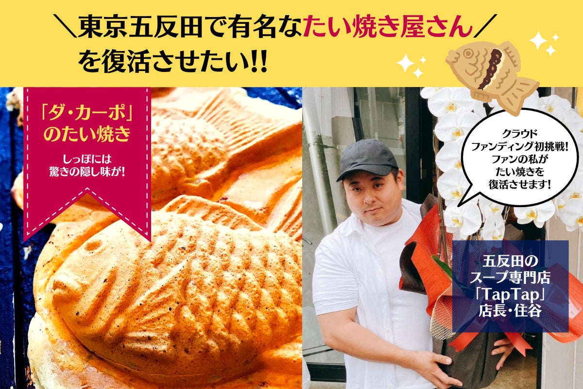 【TapTap五反田】クラウドファンディング始動!懐かしの「ダ・カーポ」のたい焼きを復活させたい!2023年3月26日(日)までの挑戦。