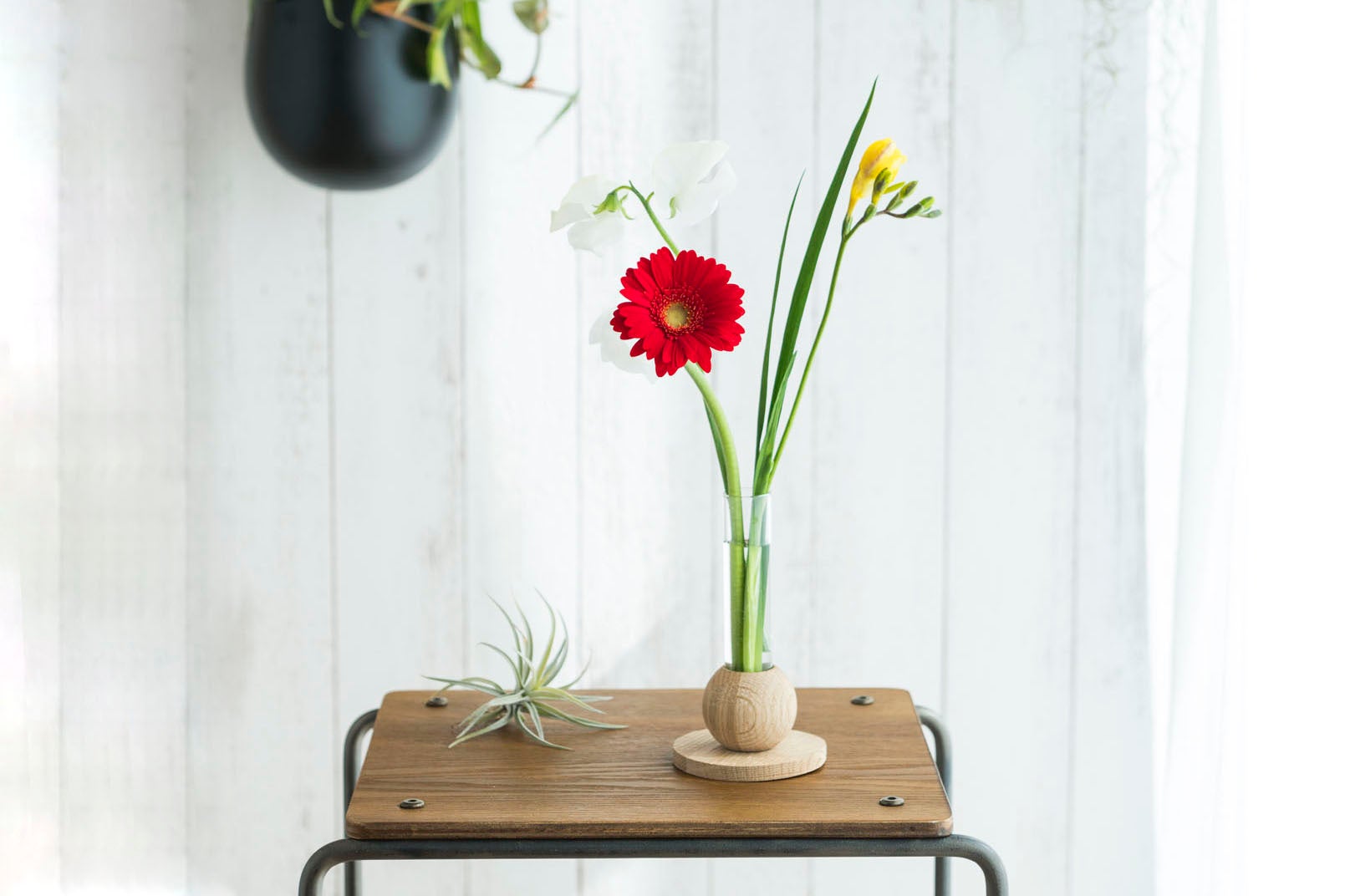 今回プレゼントする花瓶は、ウッドとガラスの組み合わせがナチュラルな一輪挿し「BAUM(バオム)」