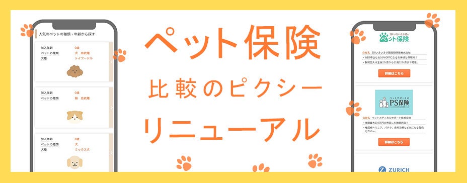 当社のペット保険比較サイト『ペット保険比較のピクシー』は、より気軽に使いやすいものへとリニューアルしました。新設した保険会社紹介ページをご覧いただき、ペットとの豊かな暮らしにお役立ていただければ幸いです。今後も充実したコンテンツをご提供するとともに、引き続きお客さまの快適な保険選びをサポートいたします。