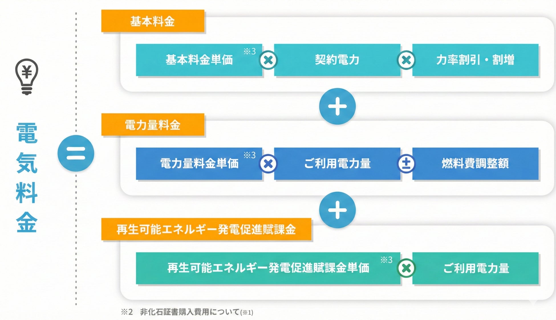 ※2 ⾮化⽯証書をご利⽤いただく場合、上記の電気料⾦項⽬に別途「⾮化⽯証書購⼊費⽤」が追加されます。