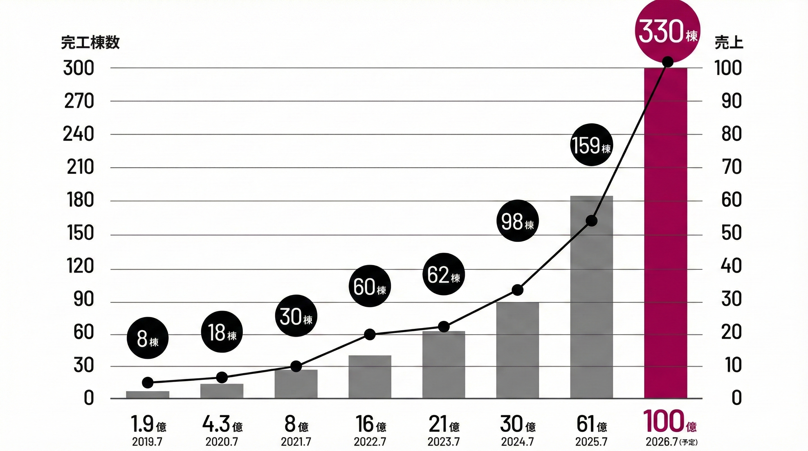 2029年7月期: 完工棟数 1,000棟 / 売上高 300億円(株式上場を予定)