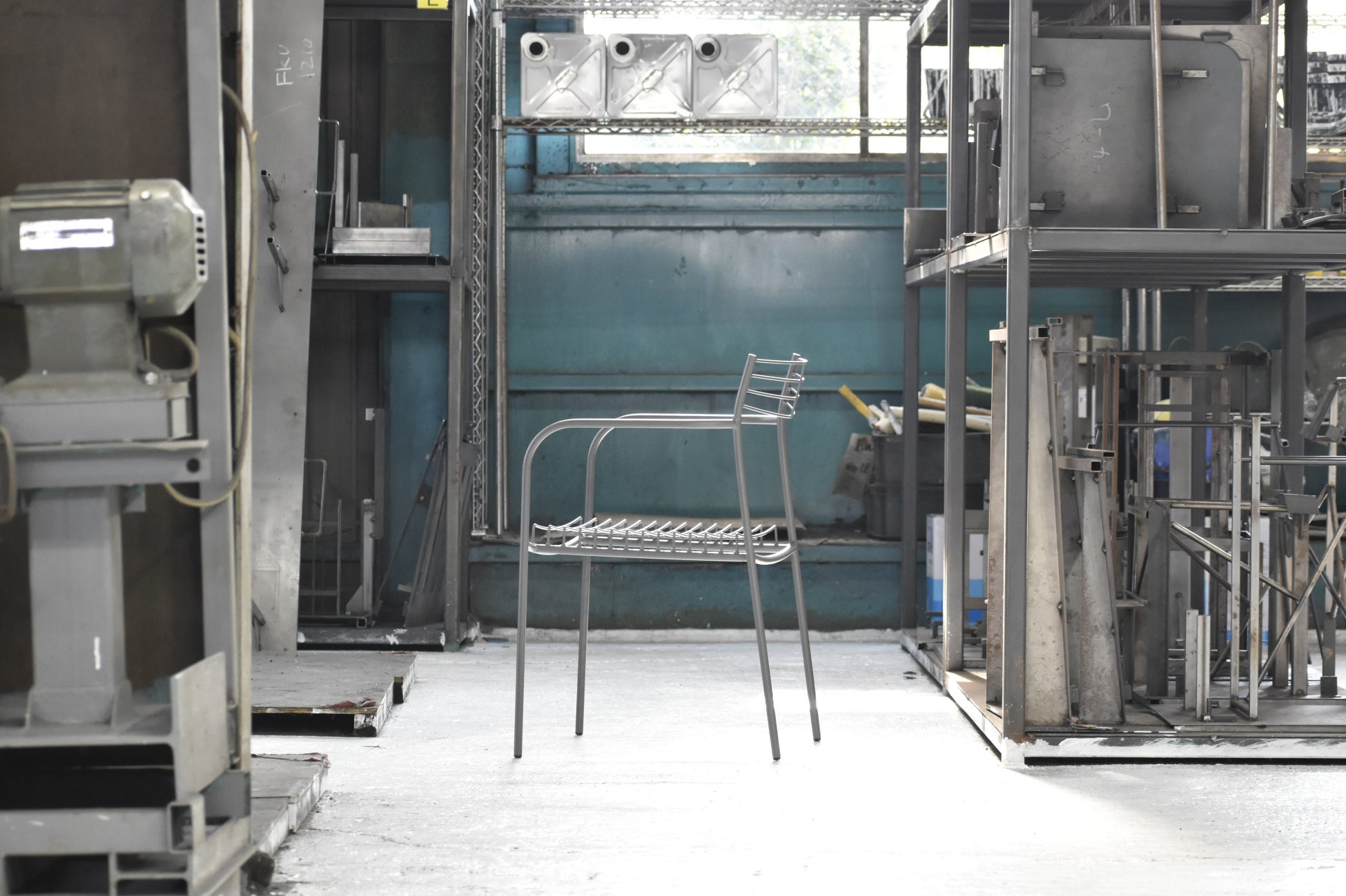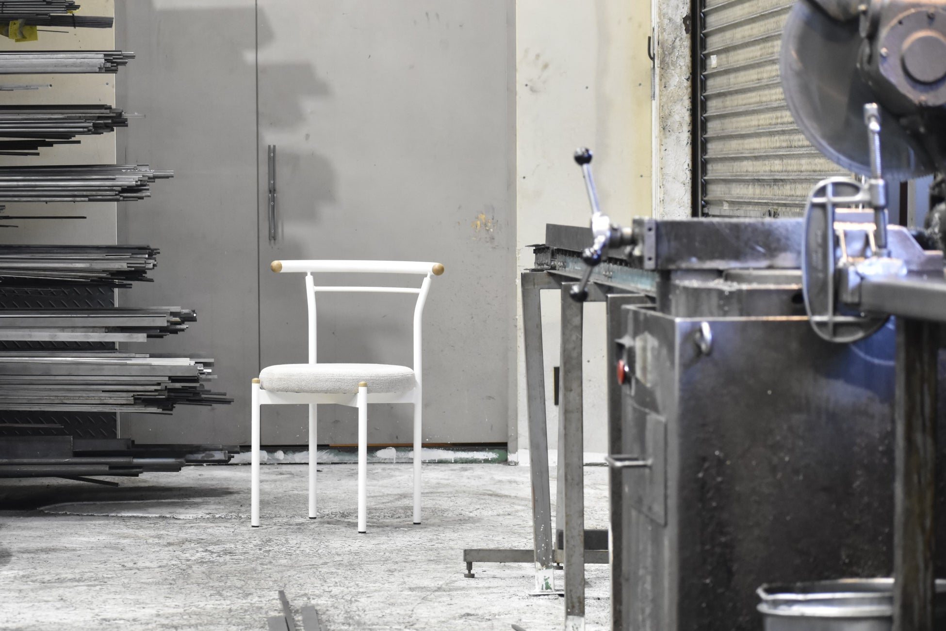 ただの棒や板に過ぎない鉄が、デザイナーの創造力と鉄職人の熟練の技によって、ミニマルで心地よい鉄家具へと生まれ変わります。鉄の持つ特性を最大限に活かしたデザインと、職人たちの手による「切る」「曲げる」「たたく」「つなぐ」「けずる」という工程。そこに加えられる繊細な仕上げが、他にはない独特の表情と質感を生み出します。