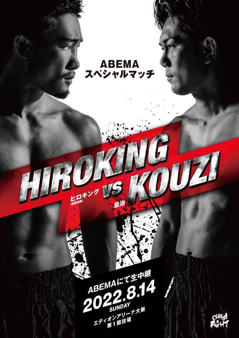 亀田興毅がプロデュースするボクシングイベント「3150FIGHT」は2022年8月14日(日)エディオンアリーナ大阪 第1競技場にて開催される。プロボクシング公式戦の後には、格闘家・皇治 vs ボクサー・ヒロキングの『ABEMA スペシャルマッチ』 が行われる。日本ボクシングコミッション管轄外のため勝敗の付かないエキシビジョンマッチとなるが、この注目対決のルール詳細が決定した。