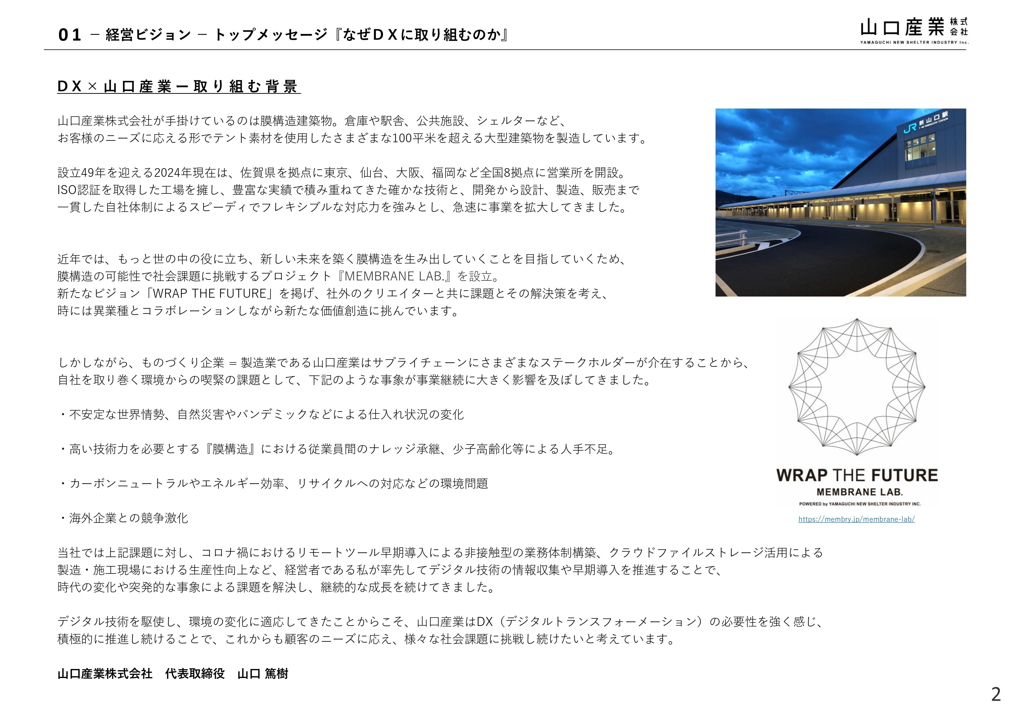 ー山口産業ホームページ:「経営ビジョンに基づくDX計画」について