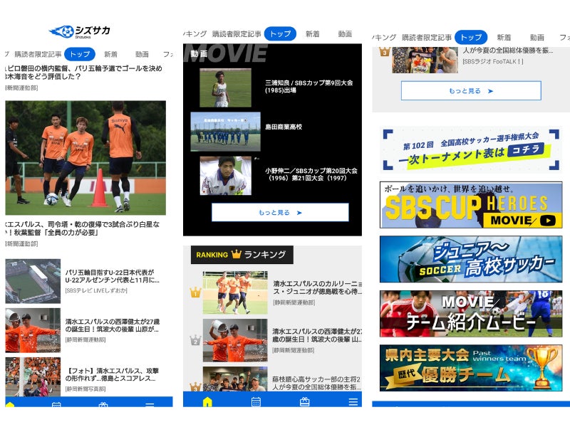 静岡県の4つのJリーグクラブの最新情報はもちろん、これまで新聞紙面では紹介しきれなかった取材のこぼれ話や、静岡が生んだ名プレーヤーの若かりし頃のプレーがよみがえる「SBSカップ国際ユースサッカー」のハイライト動画、全国高校サッカー選手権のアーカイブ写真などもお楽しみいただけます。