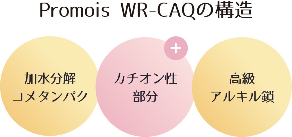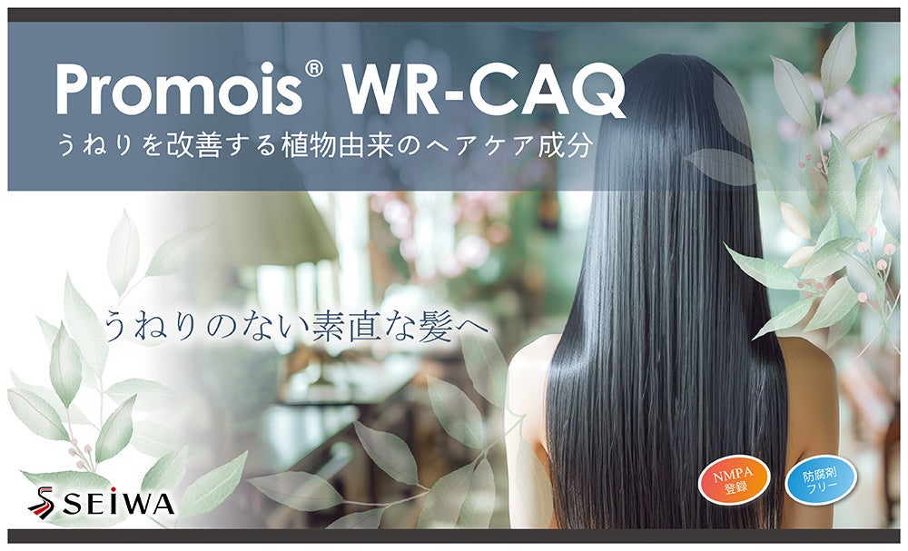 化粧品原料会社である㈱成和化成では、創業当初より天然由来の加水分解タンパク質の開発に力を注いできました。ケラチン、コラーゲン、シルク、ミルク、パール、ダイズ、コメ、エンドウと様々な天然素材のタンパク質とその誘導体を研究し、化粧品原料として製品化させることに成功しています。Promois WR-CAQも加水分解タンパク質誘導体の1つで、髪のダメージにより発生した「うねり」の改善に特化した「ウェーブキャンセラー®」をコンセプトに開発いたしました。また、近年注目されているナチュラルコンセプトのニーズに合わせて、本品では植物由来かつ生分解性に優れた加水分解コメタンパクを使用しています。