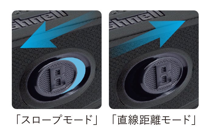 左側面のスライド切替えスイッチで「スロープモード」、「直線距離モード」に瞬時に切替。