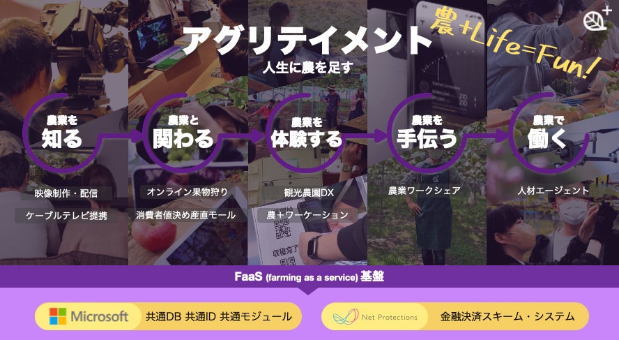 Farming as a Serviceの開発についてはマイクロソフト社と提携し、農業金融分野においては、BNPL(後払い)最大手の株式会社ネットプロテクションズ、農業NFT・農業Web3を手掛ける株式会社農情人との提携を通じて、新たなサービスを共同開発しています。