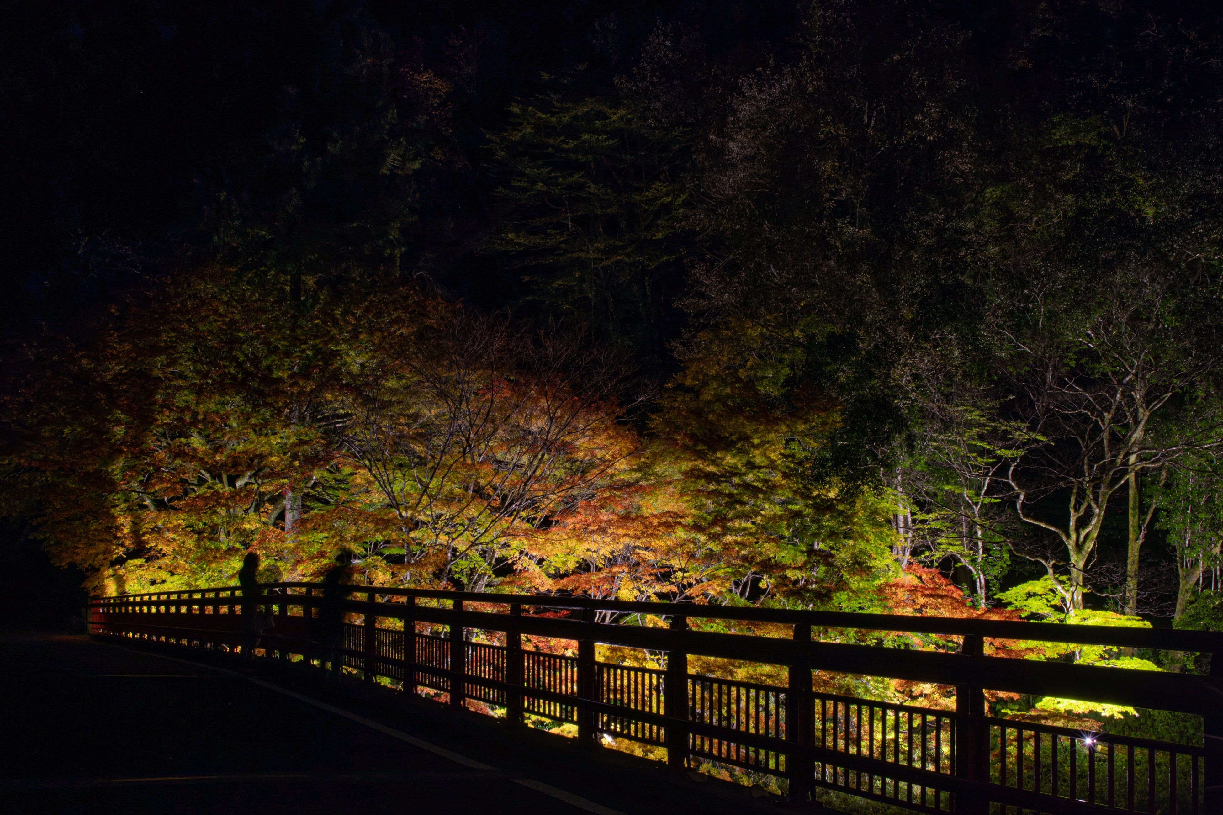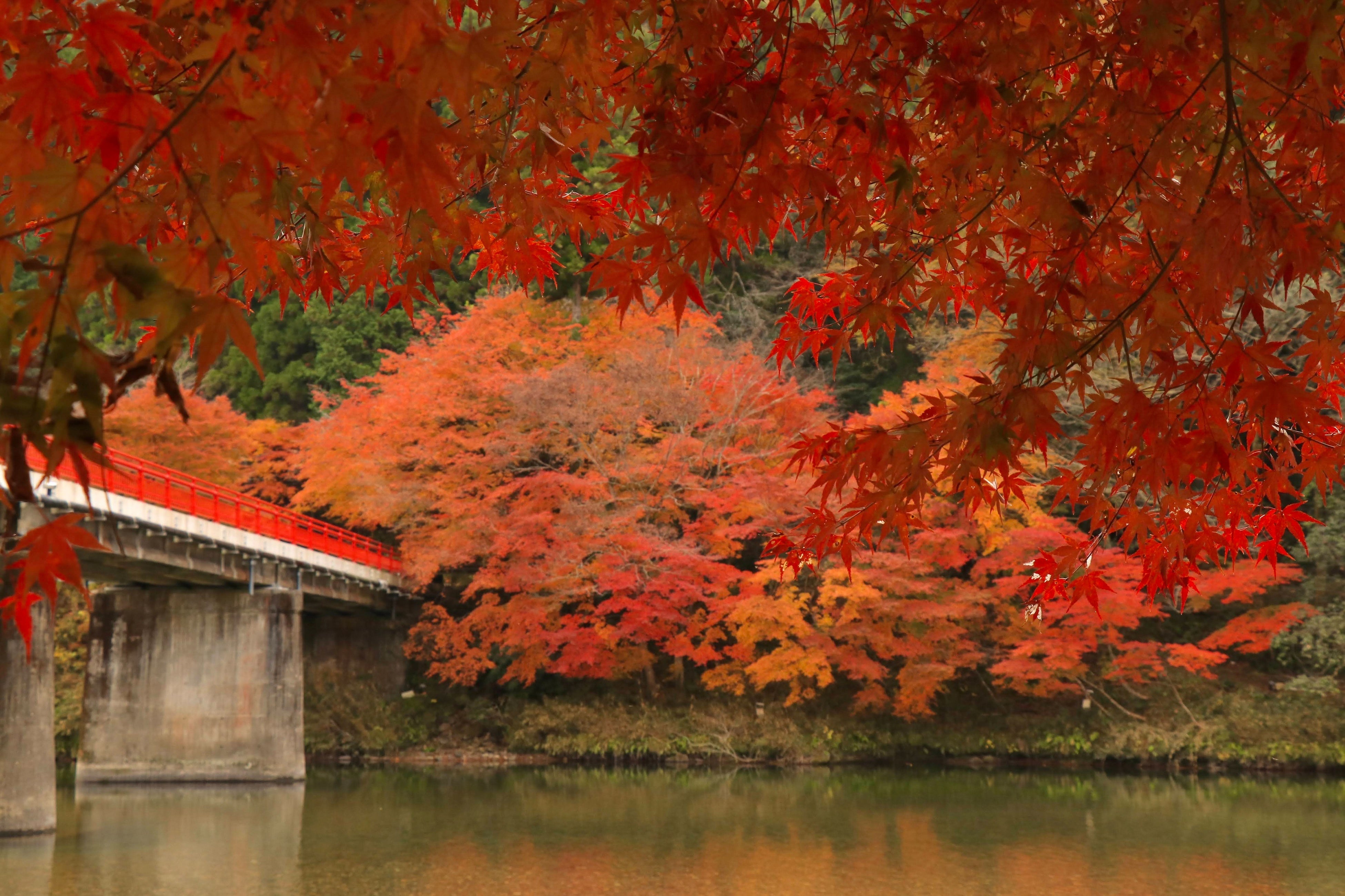 紙問屋の武井助右衛門が京都・嵐山のモミジの苗を買って植えたと伝えられています。住民の皆様はじめとした実行委員会が夜間ライトアップを行い川面に映る幻想的な風景が楽しめます。