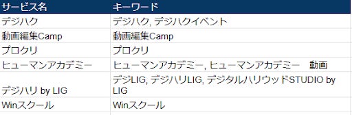 競合とキーワード:調査対象とした動画編集スクール6社