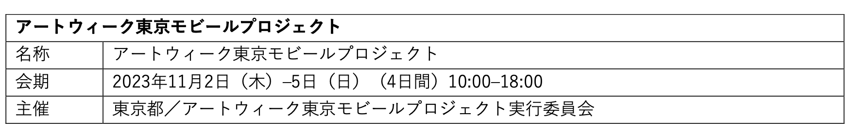 これらのプログラムは、アートウィーク東京モビールプロジェクトと東京都の主催により実施します。