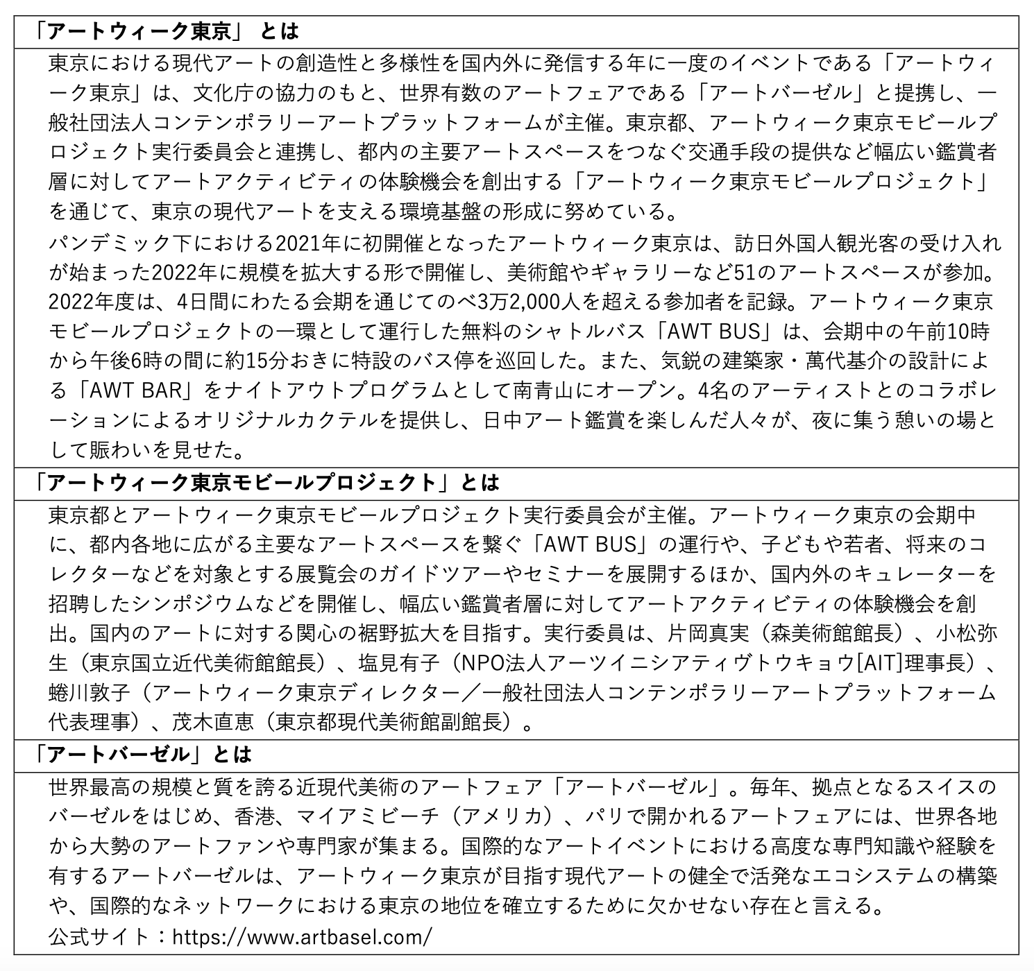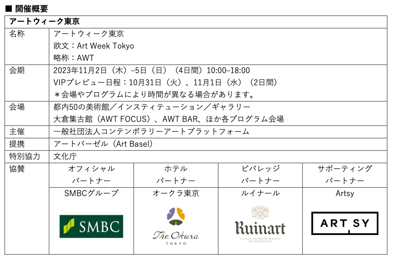2023年度「アートウィーク東京」の開催は11⽉2⽇(⽊)–5⽇(⽇)