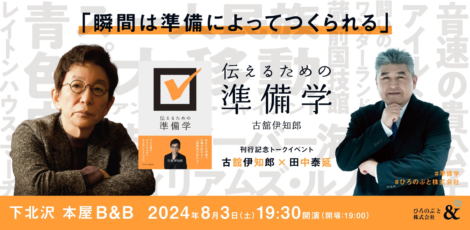 ひろのぶと株式会社(本社:東京都港区、代表取締役社長:田中泰延)は2024年7月22日、古舘伊知郎氏の新刊『伝えるための準備学』を刊行いたしました。電子書籍版も同日配信開始です。(※店頭やサービスにより取り扱い状況は異なる場合があります)