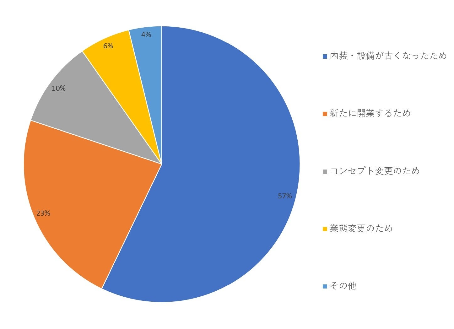 そして、「内装・改装を業者に依頼したきっかけを教えてください」という設問では、「内装・設備が古くなったため」が57パーセントを占め、最も多い割合となりました。