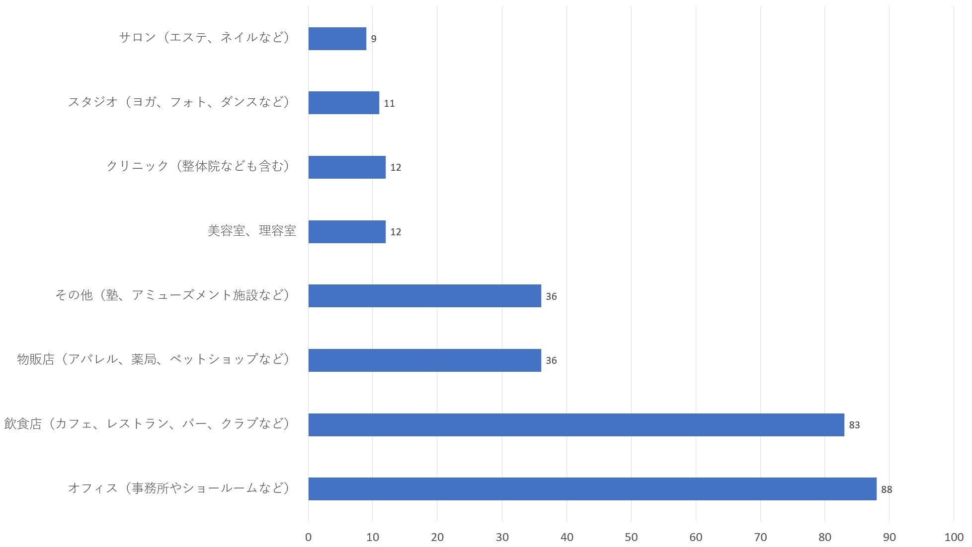 第1位 オフィス(事務所やショールームなど):88票