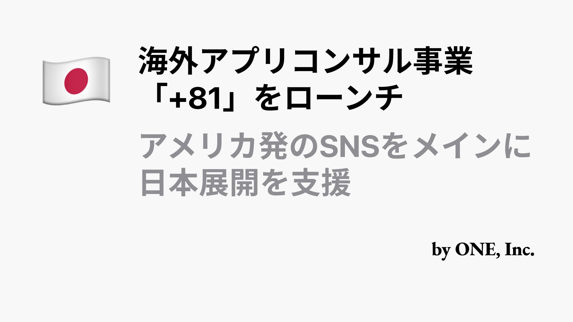 ONE株式会社、海外アプリの日本市場展開を支援する新事業「+81」のローンチを発表