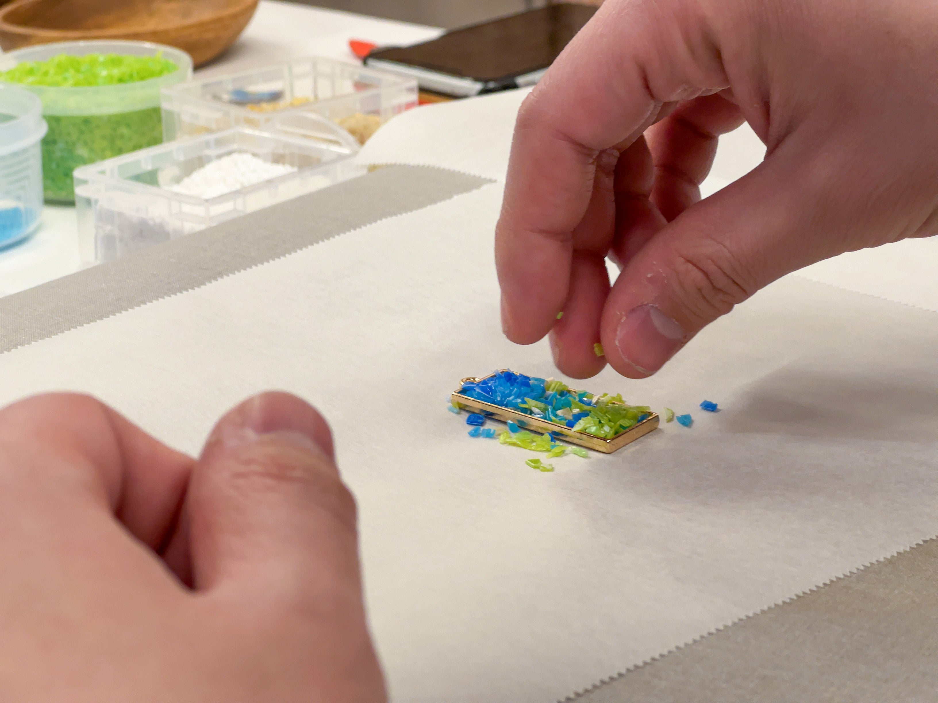 破片を溶かしてできた鮮やかな模様を、さらに理想のグラデーションになるようにこだわっている方が多くいらっしゃいました。