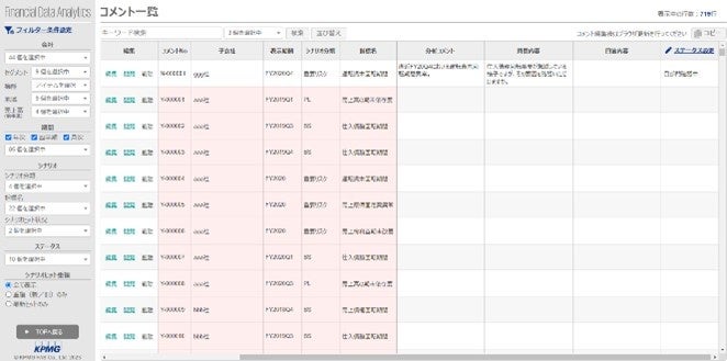 確認事項の指示、子会社への質問内容・回答内容の記録、ステータス管理など、従来ツール外で行う必要のあった社内における分析結果の共有を当ツール上で一元的に可視化することが可能となり、更なる利便性の向上を実現しました。加えて、コメントをExcelに貼付し、ツール外で情報を社内共有することも可能になりました。