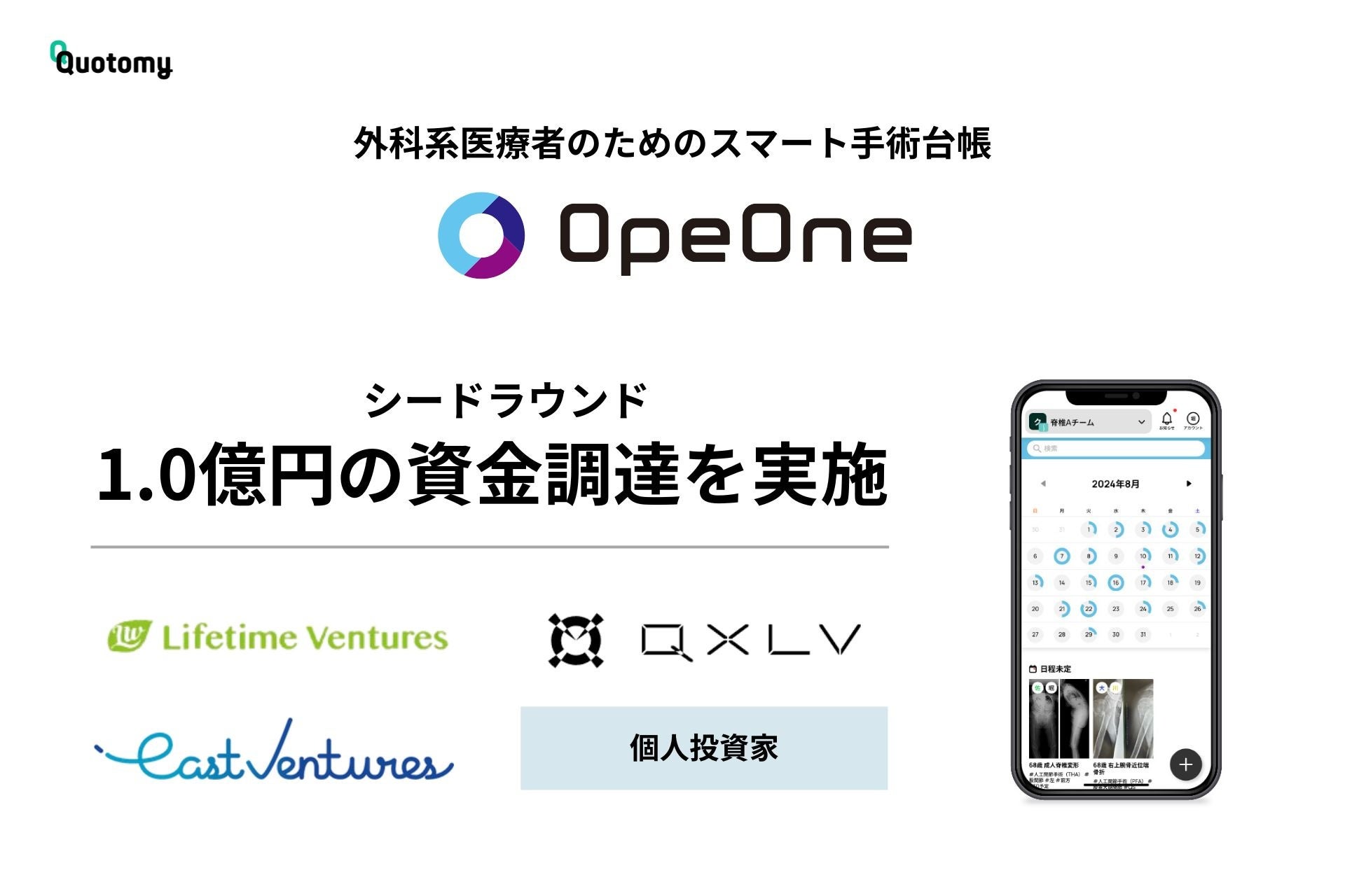 外科系医療者のためのスマート手術台帳「OpeOne(オペワン)」を開発・提供するクオトミーが、シードラウンドで1億円の資金調達を実施