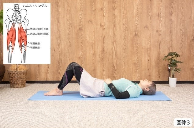 ①仰向けに寝て、膝を立てます。(画像3参照)