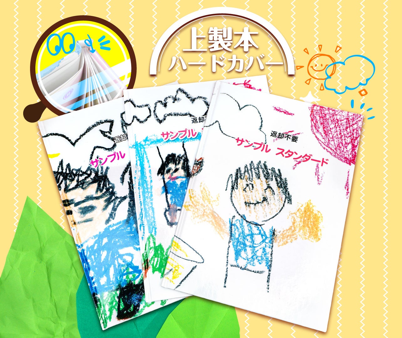 石田製本では、自社工場での生産・発送を強みに小部数(3冊〜)・低価格(3,490円〜)でのハードカバーによる卒園アルバムの制作を行っています。