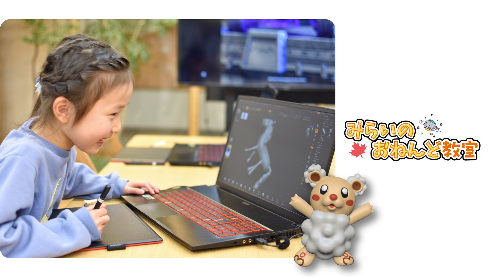 みらいのおねんど教室は、国内有数の3DCGやプログラミングが学べる子供専門教室として、経済産業省「未来の教室 ~learning innovation~」にも掲載されている、Edtech(エドテック)を活用した、デジタル技術でモノづくりやプログラミングが学べる子供専門教室です。独自のプログラムで、創造力や探究心を育み、さまざまな知識を広げ深める、新たな学びを提供しています。
