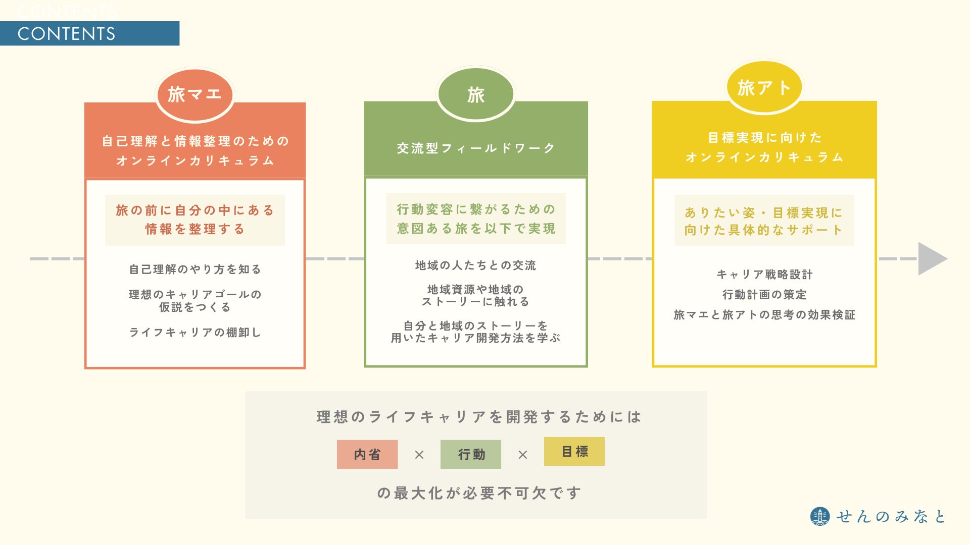 株式会社せんのみなと(本社:千葉県香取市、代表取締役社長:高崎 澄香、以下「せんのみなと」)は、複業や多拠点生活など「よりどころ」を増やしたい社会人の方向けに、現在の職業や生活エリアから離れ、その方にマッチする新しい人や地域とのつながりを提供し、ご自身のネクストアクションへ気づきをもたらすキャリアプログラムサービス「キャリアツーリズム®X(クロス)」を、2024年4月3日にリリースしました。