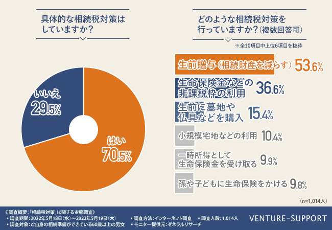 他にも「生命保険金などの非課税枠の利用」が4割近く、「生前に墓地や仏具などを購入」が1割強という結果となった。