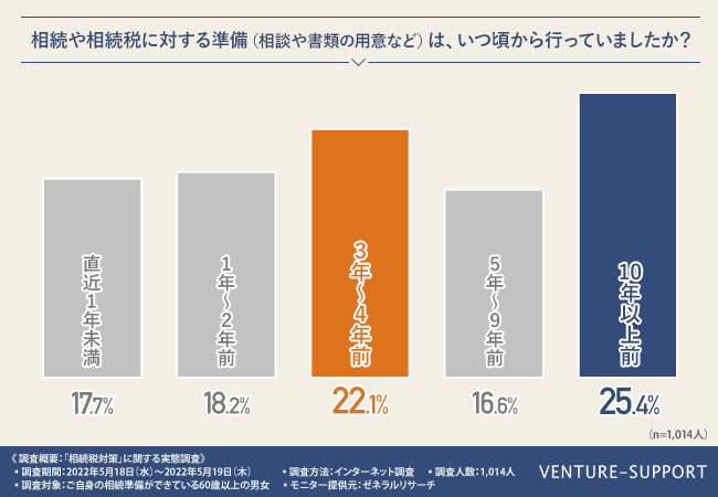 まず、相続や相続税に対する準備(相談や書類の用意など)は、いつ頃から行っていたかを調査した。
