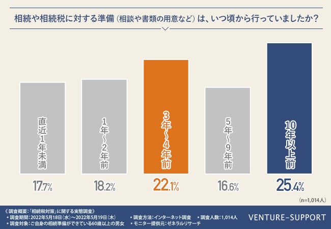 - 約4人に1人の割合で10年以上前から相続・相続税の準備を始めていることが明らかに