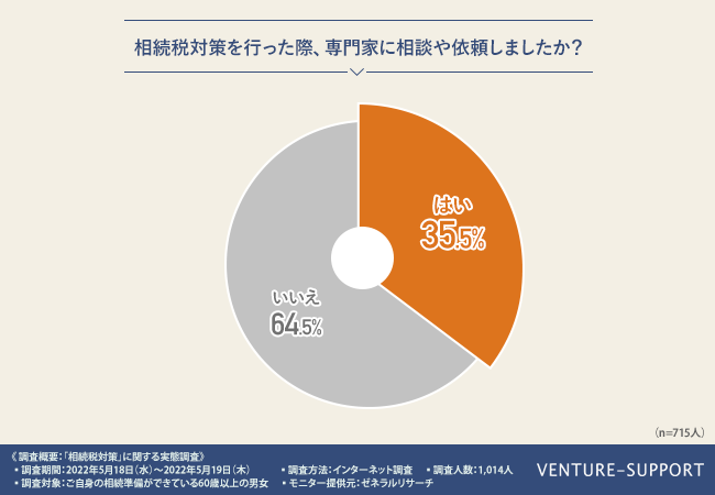 <相続税対策実態調査>具体的に相続税対策を行っているのは7割。ただし、専門家に相談や依頼をするのは過半数に至らず