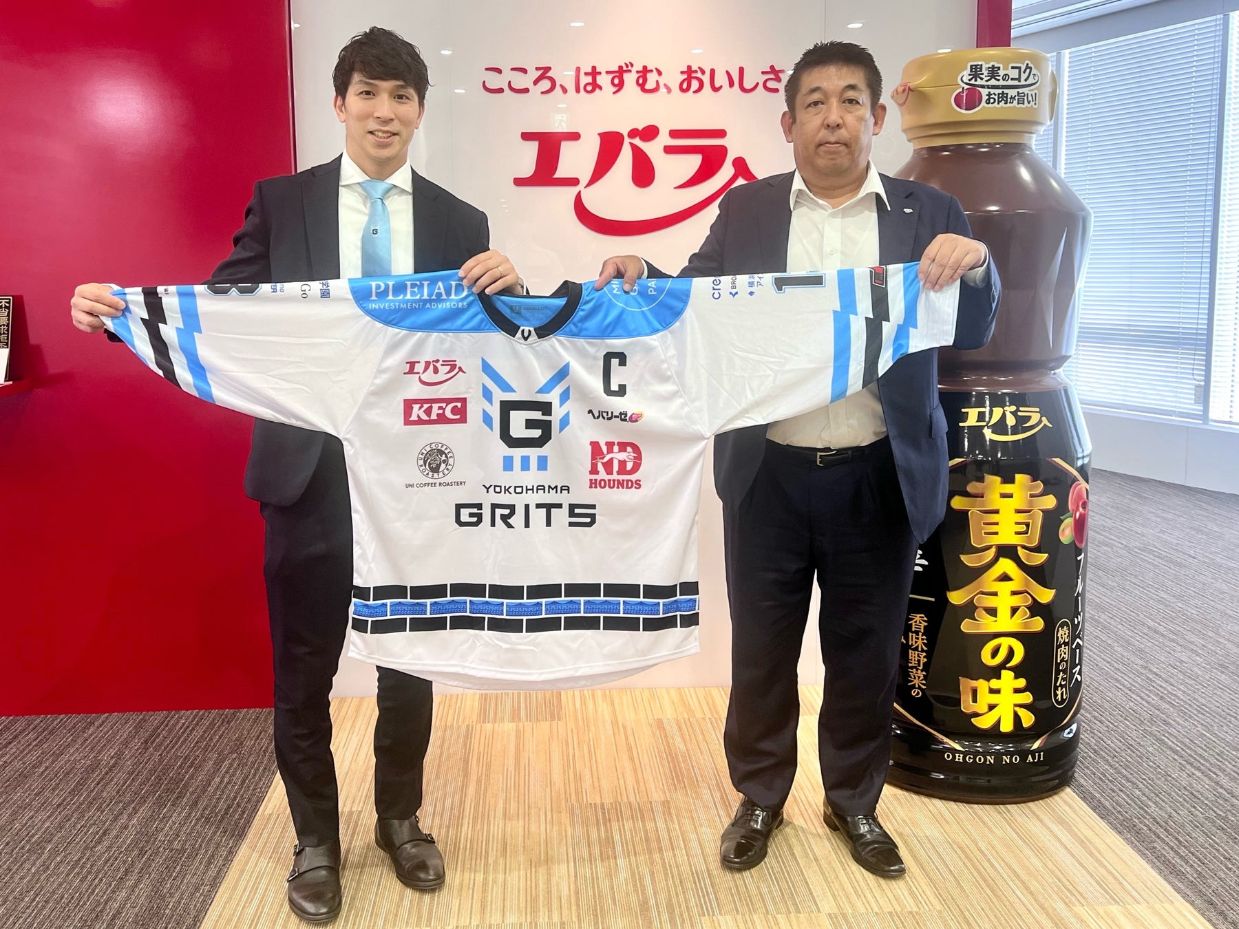 プロアイスホッケーチーム 横浜 GRITS(本社:神奈川県横浜市 代表取締役:⾅井 亮⼈、以下 横浜GRITS)は、昨シーズンに続き、エバラ食品工業株式会社(本社:神奈川県横浜市西区 代表取締役社長 森村 剛士、以下、エバラ食品)様と、プラチナパートナー(スポンサー)契約を締結いたしましたので、お知らせいたします。