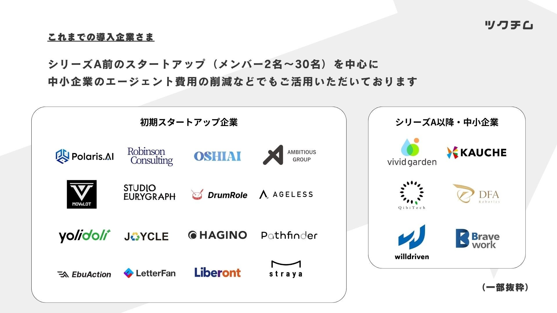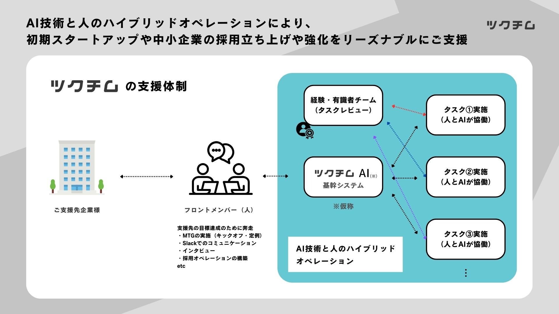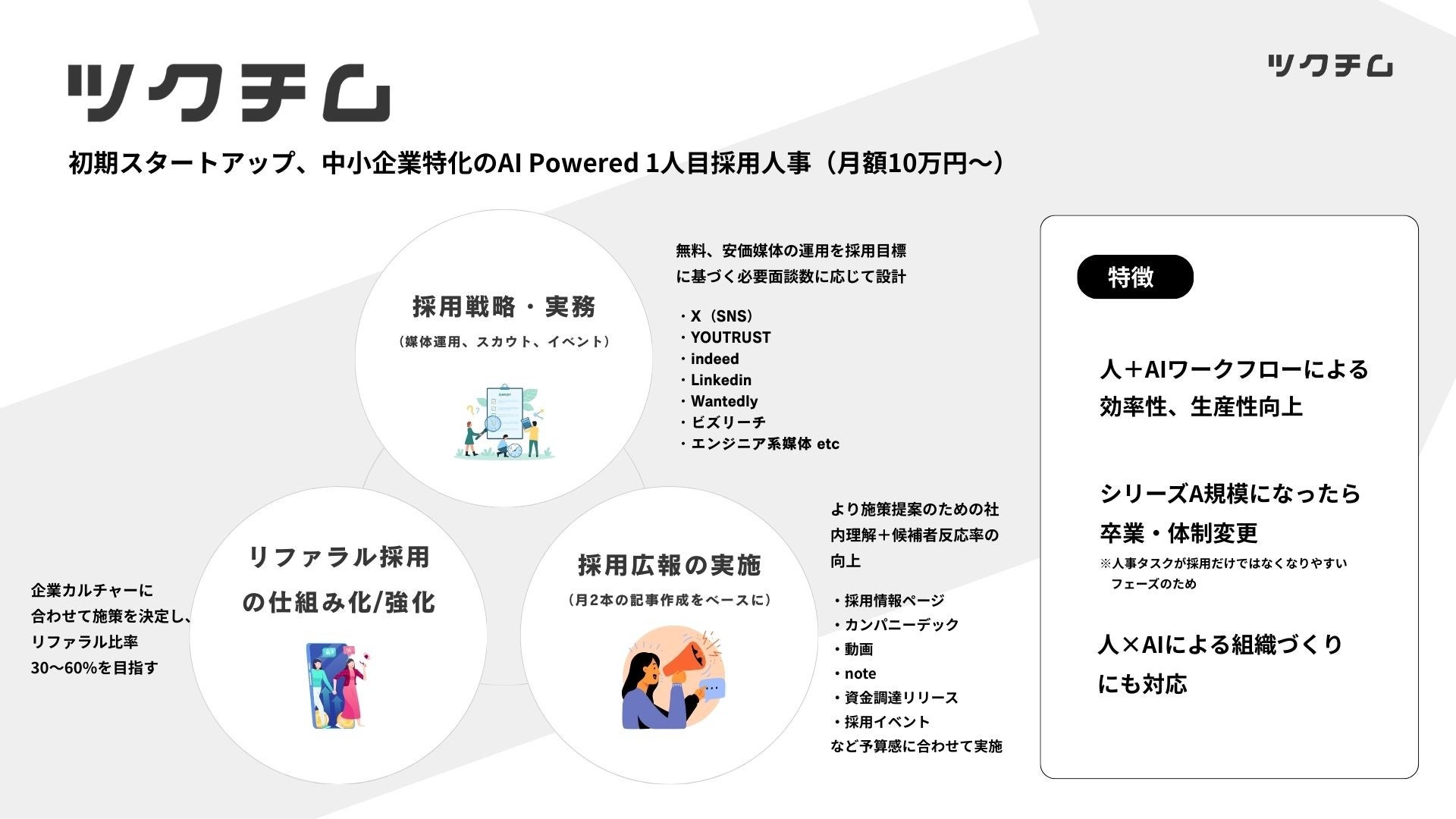 ツクチムは「初期スタートアップ、中小企業特化のAI採用・人事代行サービス」です。