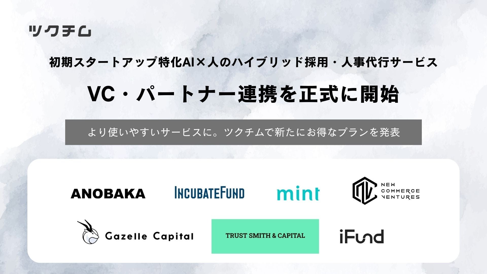 初期スタートアップ特化の1人目AI採用人事サービス「ツクチム」、VC・パートナー連携プランを提供開始