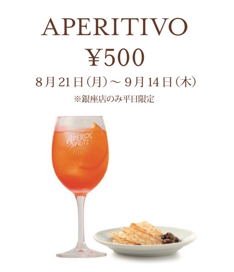 ¥500 アペリティーボ(全店・銀座店は平日のみ)