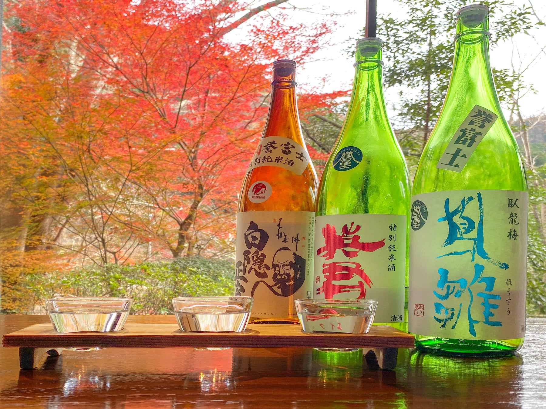 静岡県の銘酒を一度に楽しめる「飲み比べ」は、お料理とお酒の相性をお楽しみいただけます。
