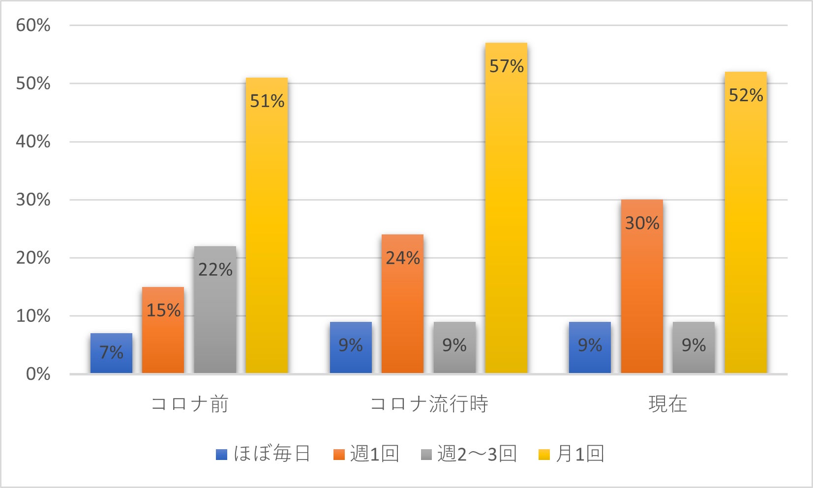 ⒈ コロナ前・コロナ流行時・現在のコインパーキング利用頻度