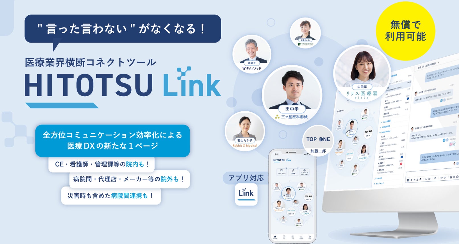 災害時・平時の院内外・病院間の安定コミュニケーションを担う、無償利用可能な医療業界横断コネクトツール "HITOTSU Link" β版を提供開始