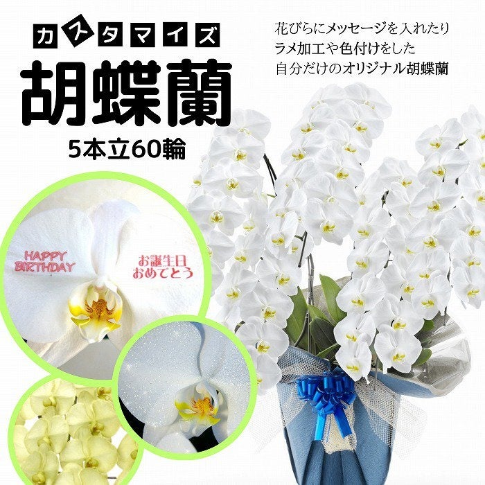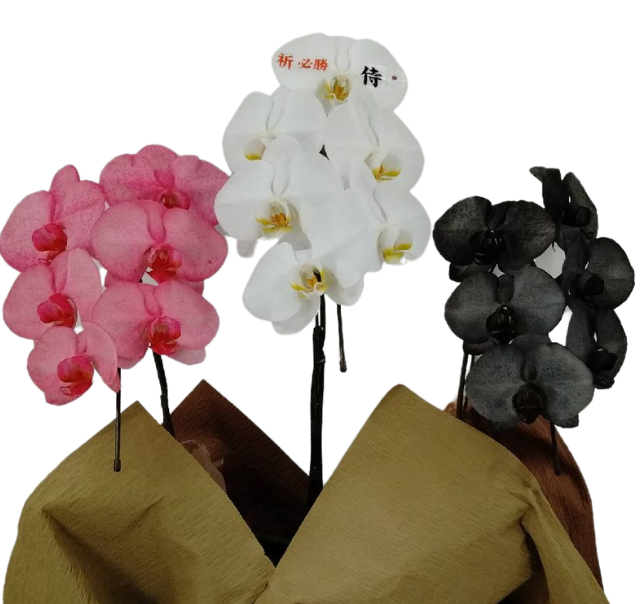 また、色を付けない白の胡蝶蘭の部分には、文字を乗せることも可能。