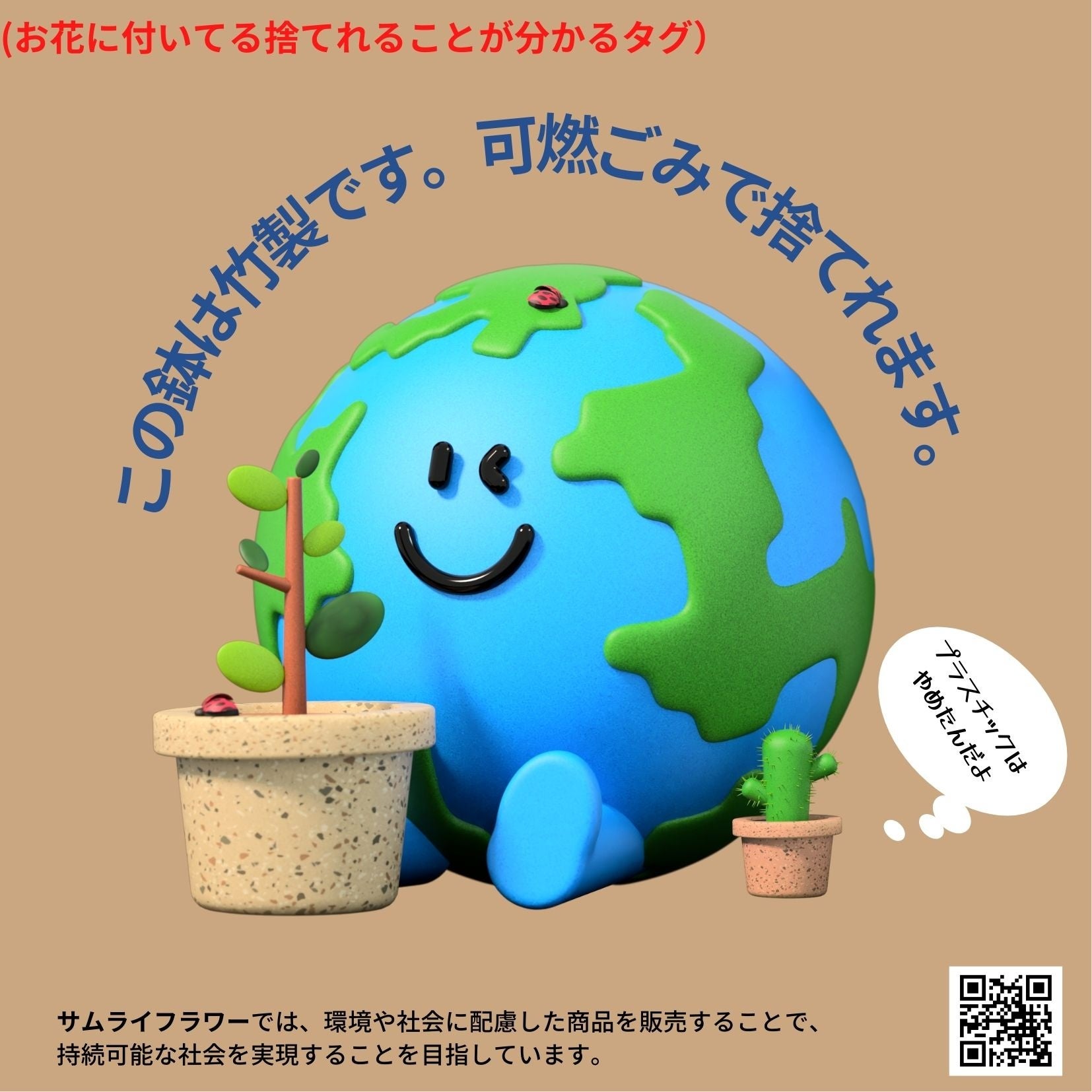 なお、胡蝶蘭の鉢はSDGsの観点から、全て竹製の鉢を使っており回収の手間がなく、廃棄が可能。