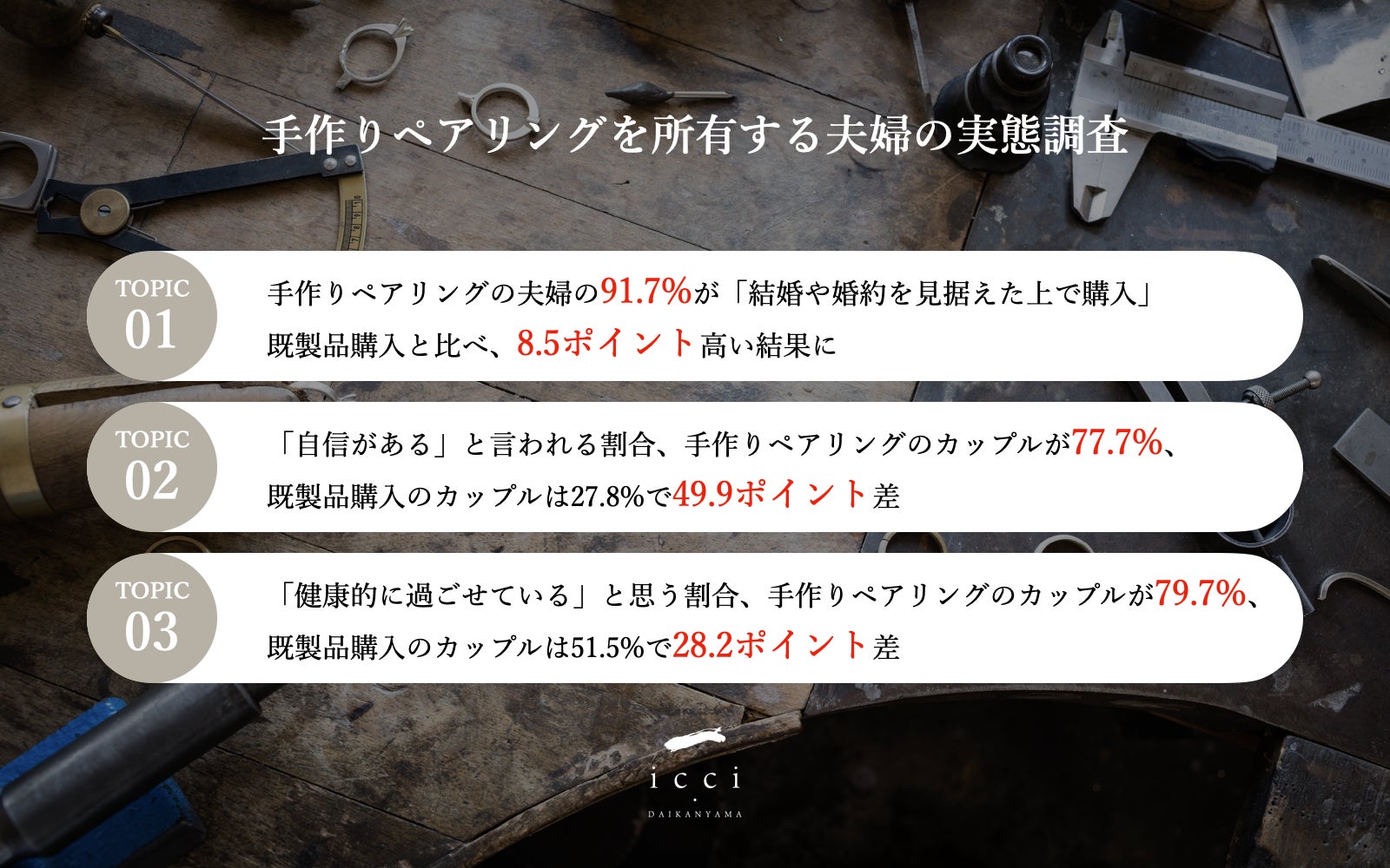 〜東京/代官山の手作り結婚指輪・婚約指輪・ペアリングの「icci 代官山」、手作りペアリングを所有する夫婦の実態調査〜