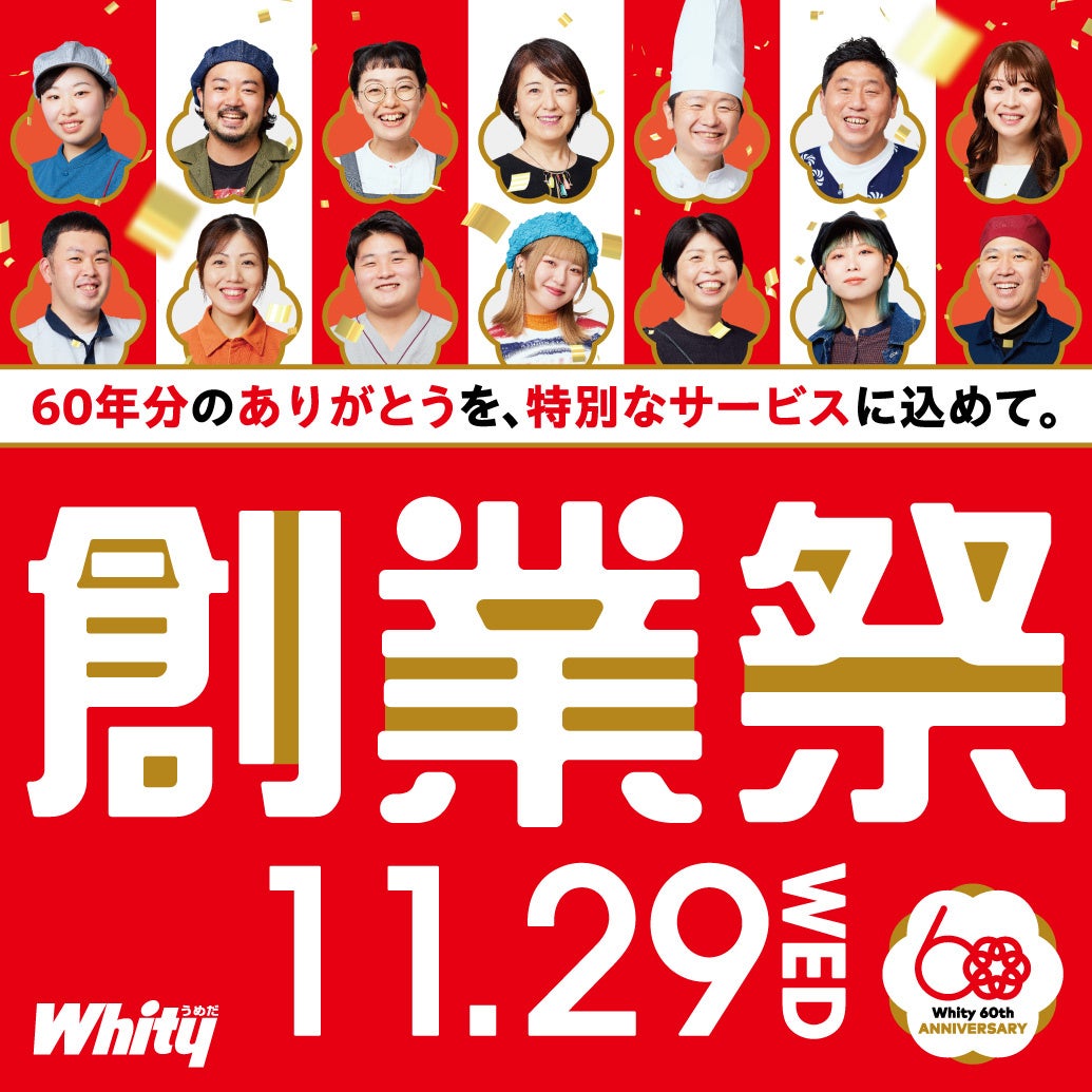 ~物価高の中、60年分の“ありがとう”を驚きの価格と限定サービスに込めて~ 2023年11月29日「ホワイティうめだ」は創業60周年を迎えます周年を記念して今年の「創業祭」はパワーアップして開催!