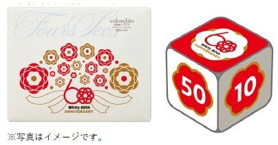 10、20、30、40、50、60 周年ロゴの6 面で構成されたサイコロを2 回振って2 回振った合計が「60」になるか、2 回のうちいずれかで「60 周年ロゴ」が出た方には「60周年記念Whityオリジナルクッキー缶(colombinコロンバン)」をプレゼント。
