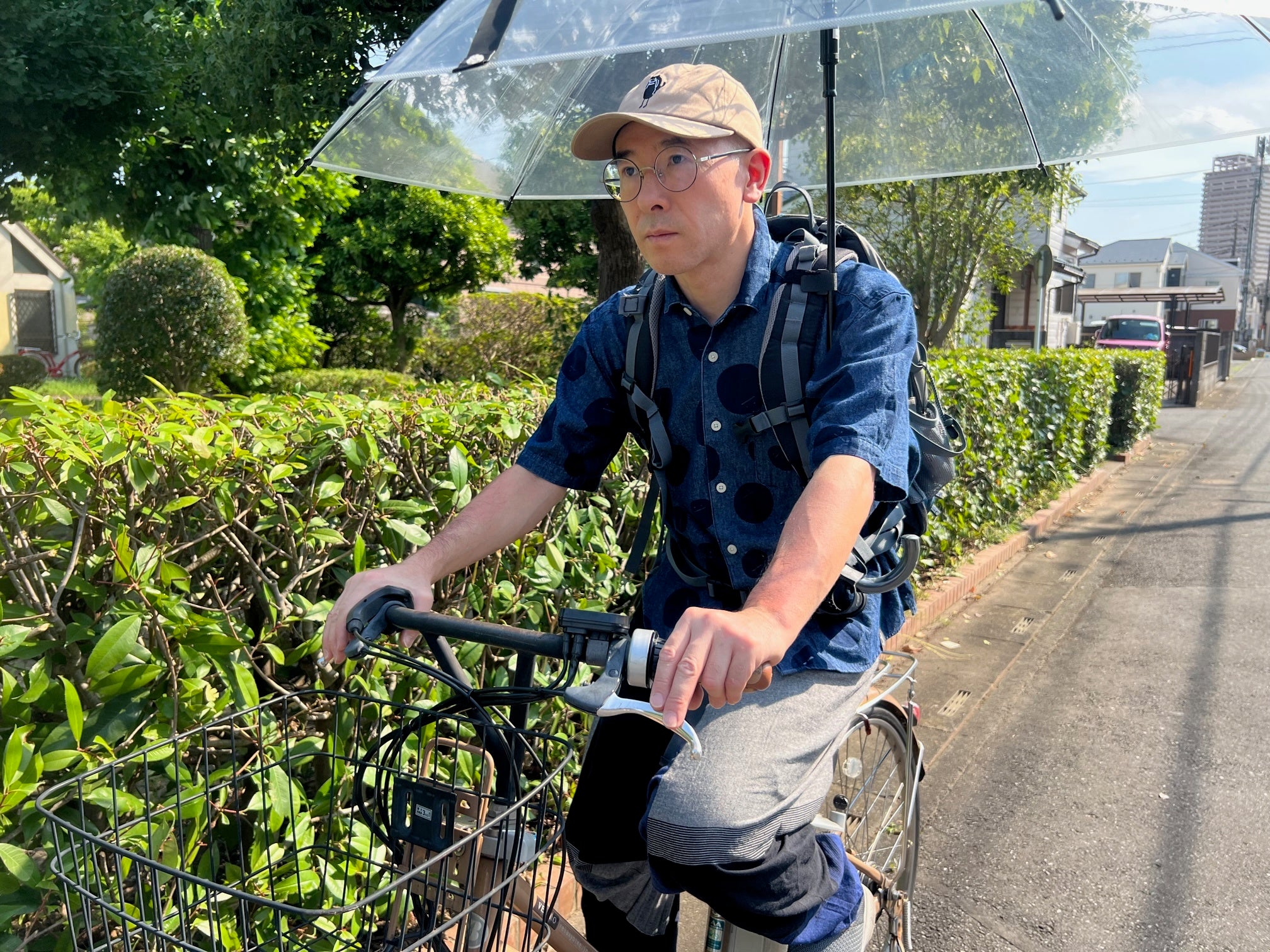 雨風が強い時こそ、手ぶらで傘をさす!自転車にも!