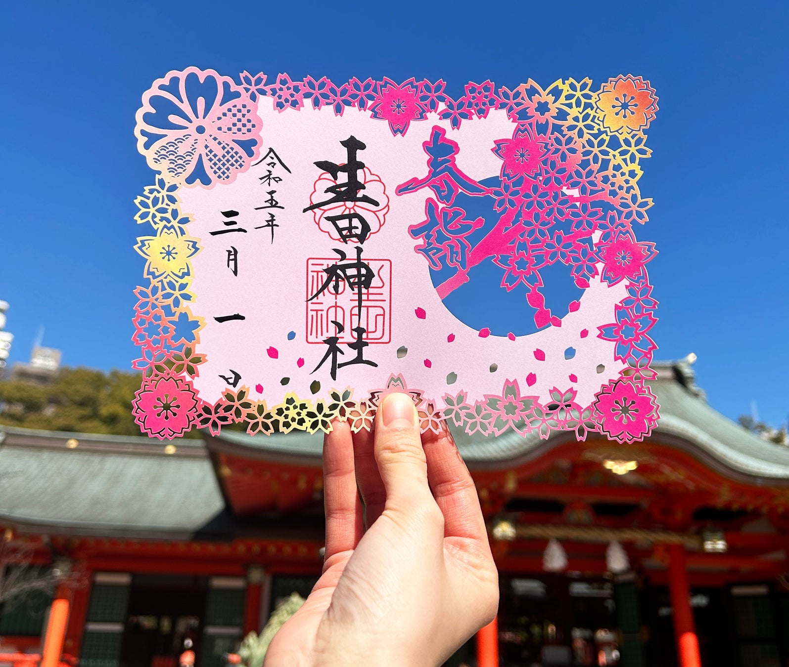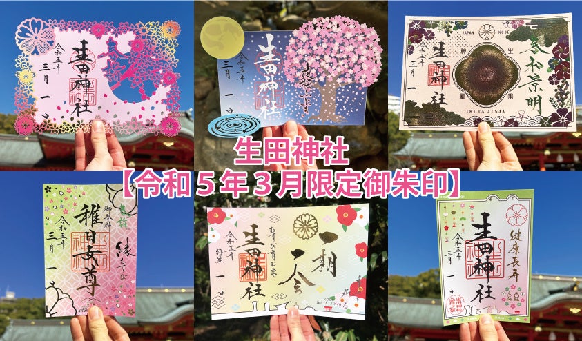 「むすび育む宮」生田神社(兵庫県・神戸市)にて令和5年3月1日(水)より、切り絵御朱印・四輝(しき)朱印をはじめ、春期限定の御朱印6種を授与いたします。