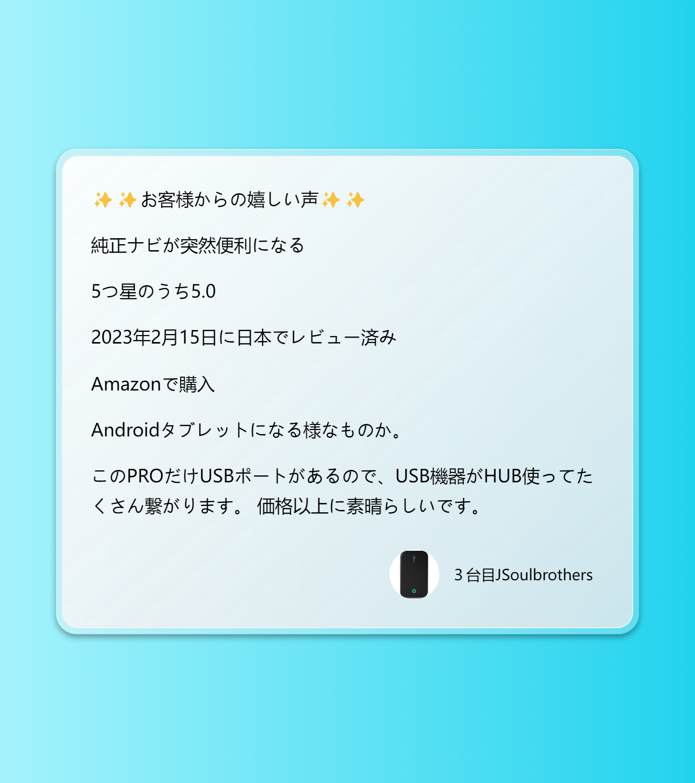 今回のPICASOU 2 Proについて、一番大きな強みというのは、HDMI入力端子が付いたことです。これによって、地上波が見れるようになりました。従来機種なら、ネットしか見れないとか、地上波しか見れないとか、かなり不便ですが、本製品を装着すると、そういった不便を感じることなく、好きな番組を視聴することが可能になるため、車内のエンタメ性や快適性が向上することは確実です。