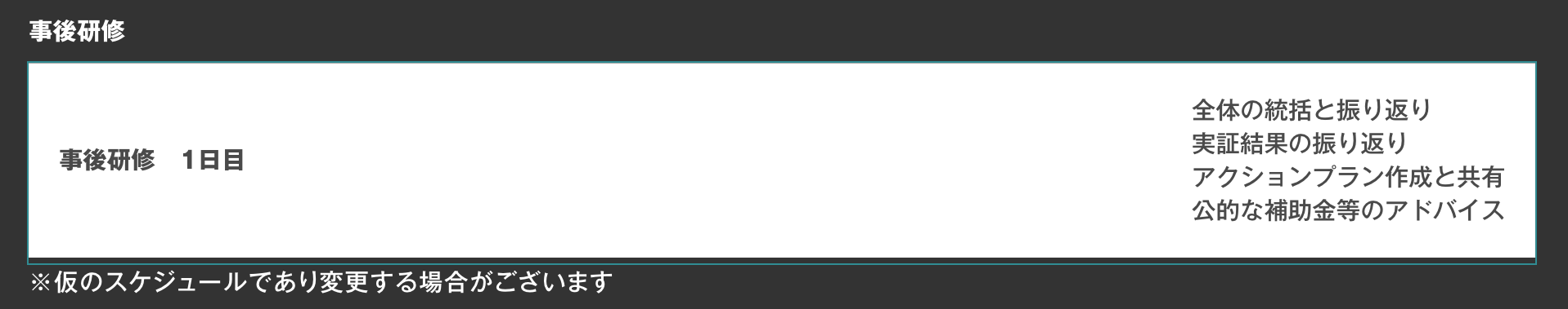 本プログラム終了後も検証の振り返りや今後のアクションプランの検討を弊社スタッフが共に行うなど、本プログラム後のサポートも充実した企画となっております。
