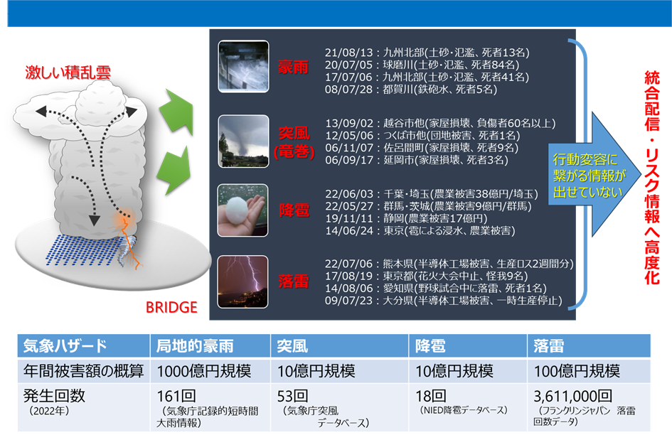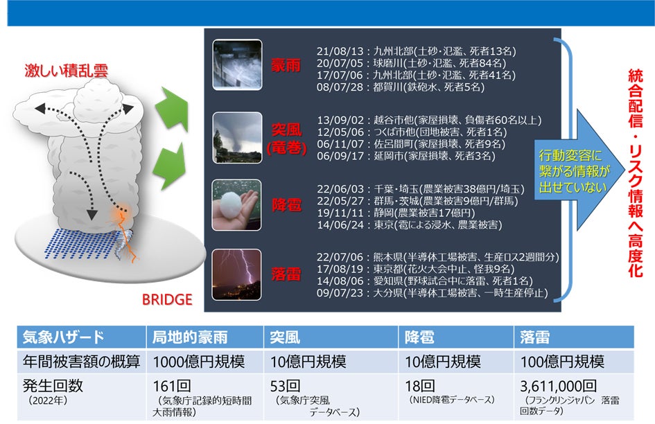 これらによって、頻発する積乱雲マルチハザードによる人的被害や年間2,000億円以上と推定される経済被害等の低減・防止に貢献していきます。