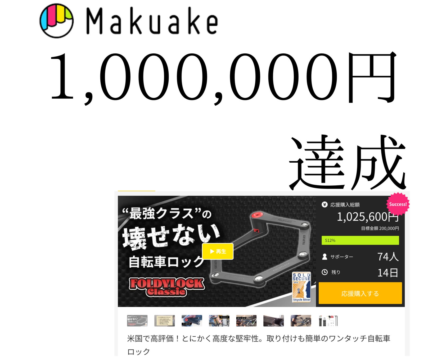 全米が認めた⁉”最強クラス”の壊せない自転車ロックがクラウドファンディングで1,000,000円達成!
