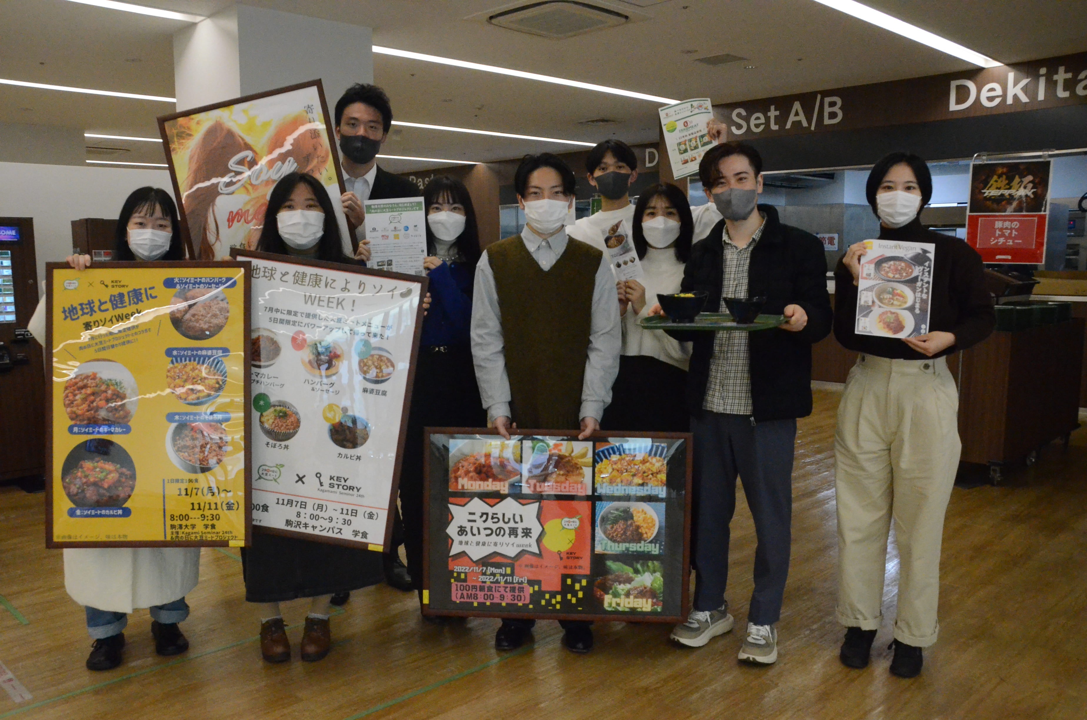 豆腐を原料とする100%植物由来の新食材「TOFU MEAT(トーフミート)」を開発・製造する株式会社トーフミート(本社:山口県宇部市、代表取締役社長:村上 英雄/以下「トーフミート」)は、料理体験共有アプリ「SnapDish (スナップディッシュ)」を運営するヴァズ株式会社が実施する、大豆ミートで持続可能な食文化を目指す「肉の日に大豆ミートプロジェクト」の一貫として駒澤大学と共同で「地球と健康に“よりソイ” Week in 駒沢食堂」が開催され、TOFU MEATを活用したオリジナルの『そぼろ丼』を100食限定販売いたしました。